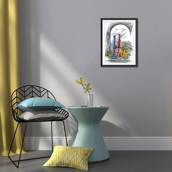 J463 Wine Cotton Thread Printed Canvas Cross Stitch DIY Embroidery Cloth
